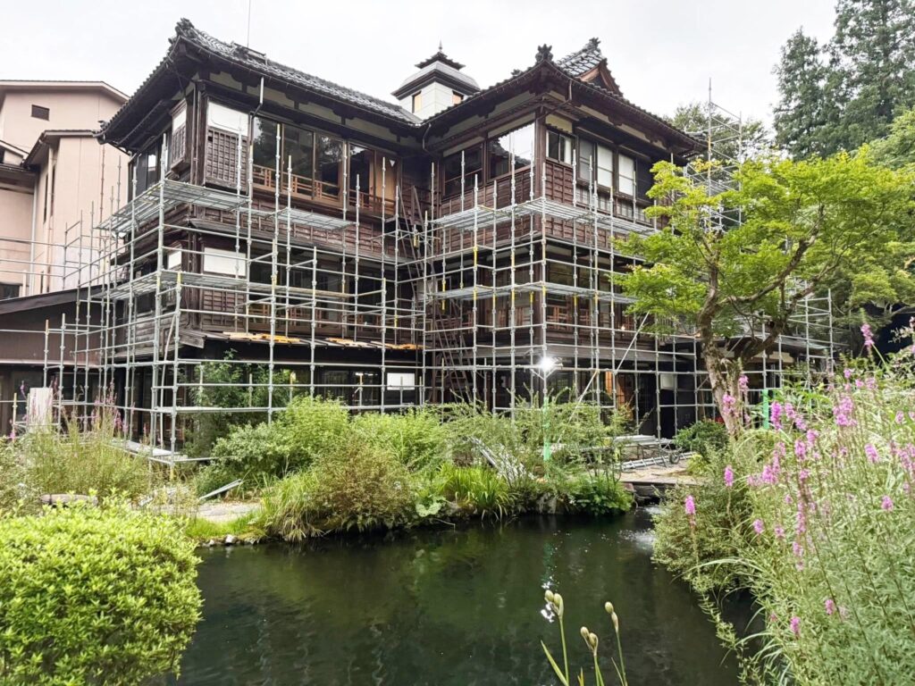 「昭和の風情と佇まいを、今に伝える」そんな思いを大切にされている越後長野温泉 嵐渓荘様(国登録有形文化財)の緑風館の外部、内部塗装を施工させていただきました。